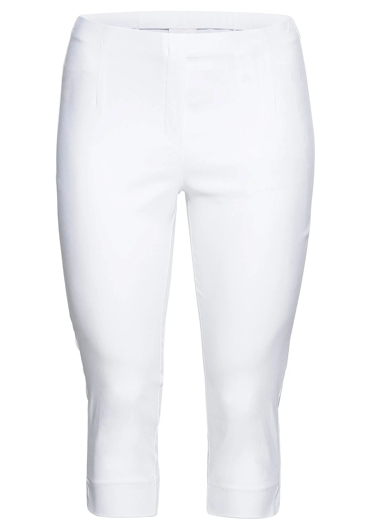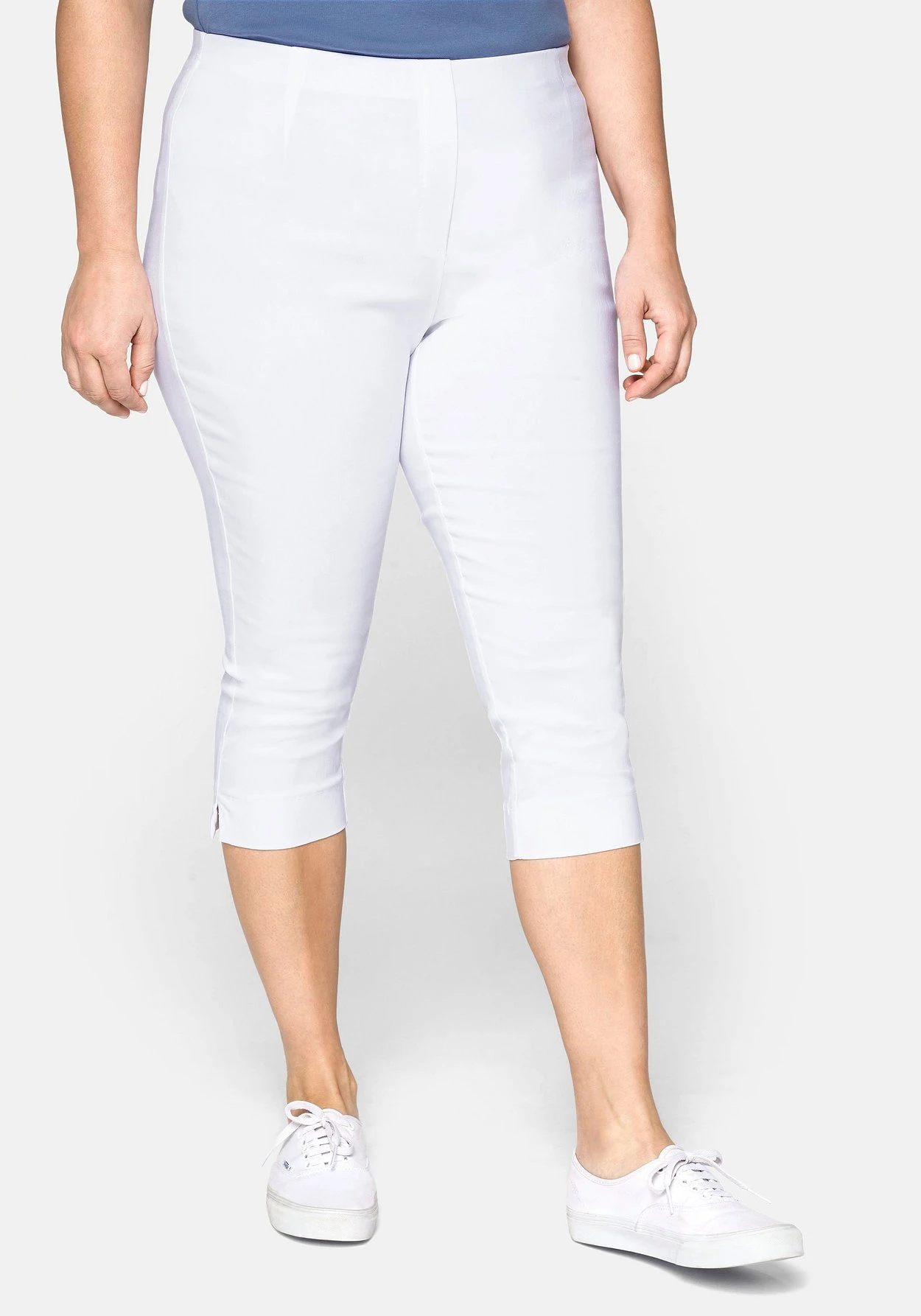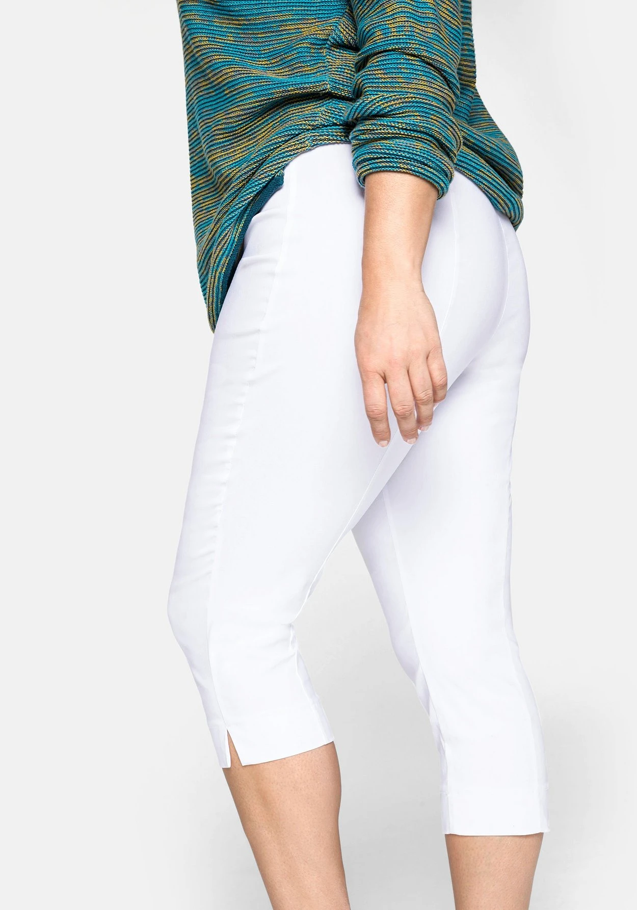Diese Caprihose überzeugt durch den bequemen Schlupfbund mit Gummizug, der taschenlose Schnitt trägt nicht auf. Kleine Schlitze am Saum sorgen für ausreichend Bewegungsfreiheit.