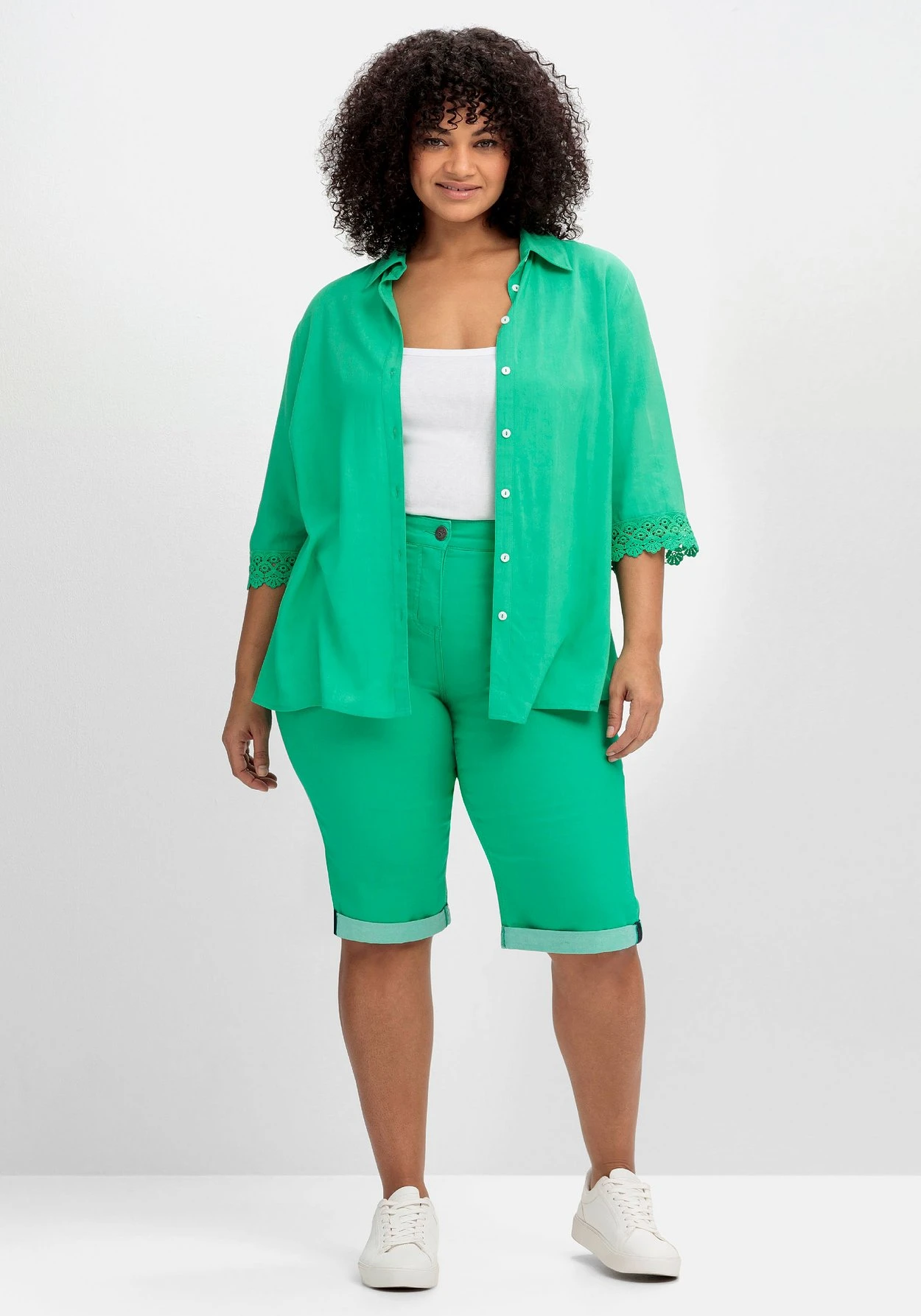 Der Baumwoll-Mix in Denim-Optik ist leicht elastisch und sehr bequem. Durch deinen Kauf unterstützt du außerdem die Arbeit von „Cotton made in Africa“. Die Initiative leistet Hilfe zur Selbsthilfe durch Handel und will so die Lebensbedingungen afrikanischer Kleinbauern verbessern. sheego cares!