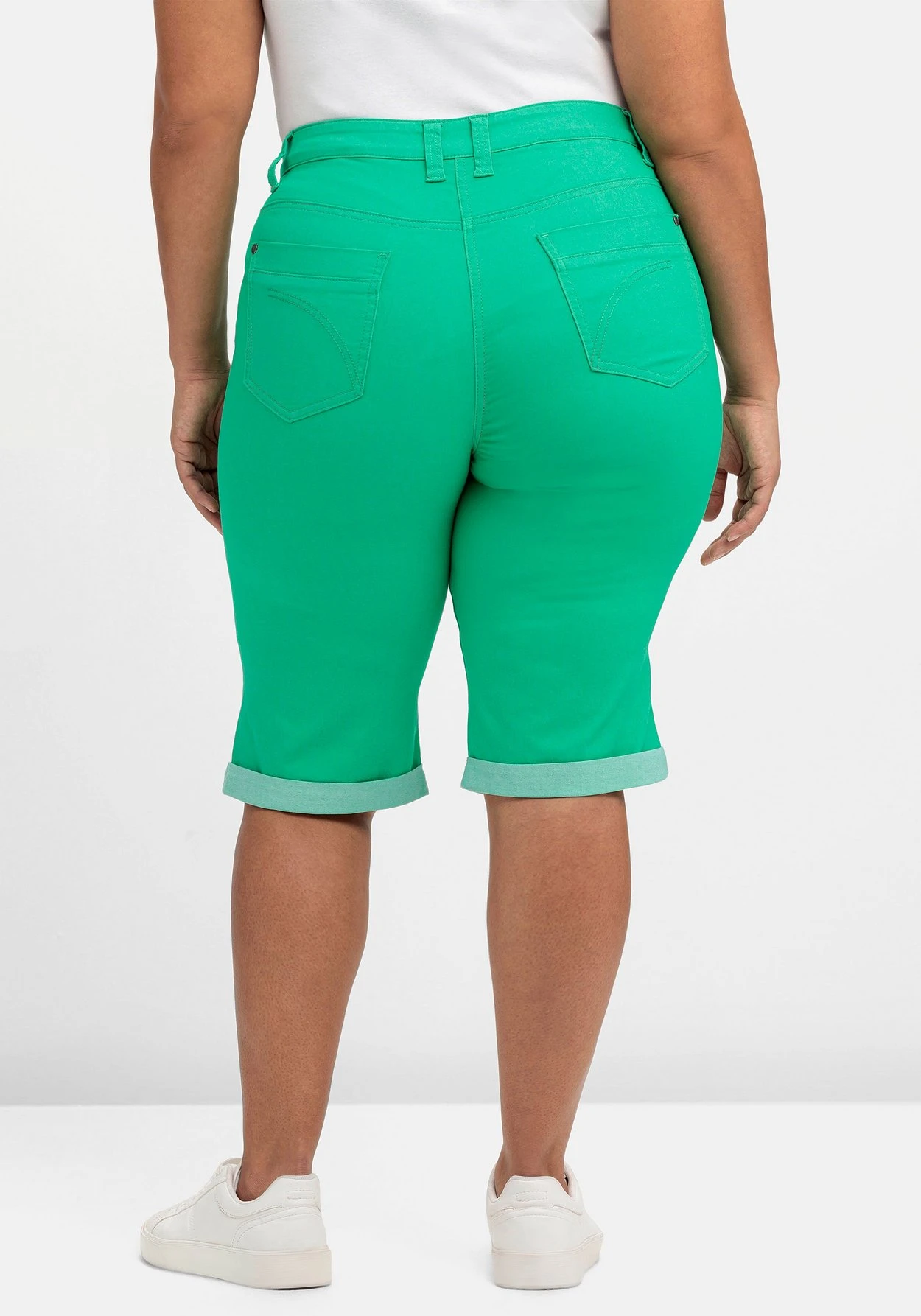 Bermudas in Five-Pocket-Form. Die Hosenbeine enden mit fixiertem Aufschlag und geben dem Look eine sportive Note. Das kontrastfarbene Band seitlich am Aufschlag setzt dabei einen modischen Akzent. Ausgestattet ist die Hose mit Formbund und Gürtelschlaufen, eine dezente Stickerei ziert die Potaschen.
