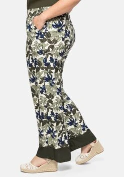 Oben sitzt die Hose figurbetont, der umgeschlagene Saum umspielt locker die Beine.