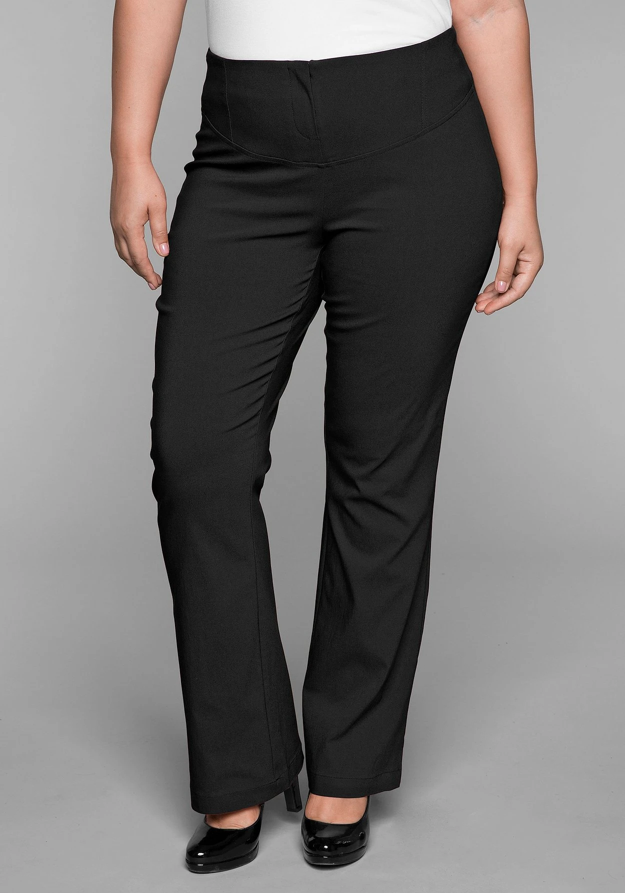 Dank des Bodyforming-Effekts ein toller Figurschmeichler: Diese Bootcut-Hose begeistert durch die besondere Schnittführung und eine doppellagig gearbeitete Passe vorn. Die Hose ist mit einem verdeckten Reißverschluss gearbeitet, hinten besitzt sie aufgesetzte Taschen.