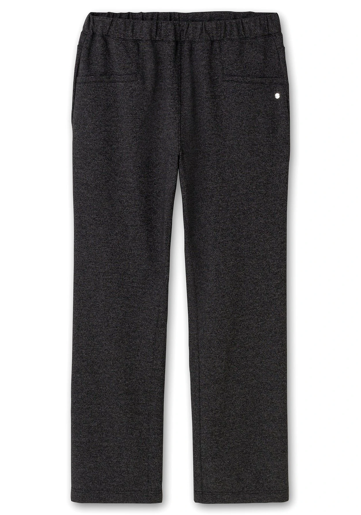 Bequeme Hose in Bootcut-Form. Durch den elastischen Schlupfbund erhält die Hose entspannten Tragekomfort. Angedeutete Ziertaschen in Leistenoptik ergänzen dekorativ den schlichten Style. Die Salz- und-Pfeffer-Optik verleiht der Schlupfhose eine melierte Optik.