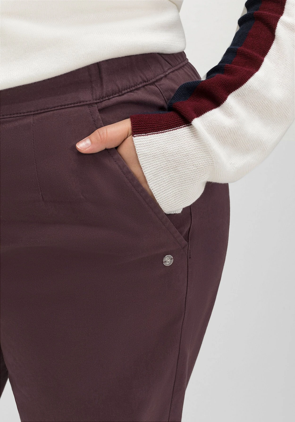 Twillhose im Chino-Schnitt. Der unkomplizierte Look ist in Schlupfform mit bequemem Teilgummibund hinten gearbeitet. Zu den beiden Eingrifftaschen vorn kommen zwei Leistentaschen hinten. Mehr Lässigkeit erhält der Look mit hochgekrempelten Hosenbeinen und wird wirkungsvoll betont.