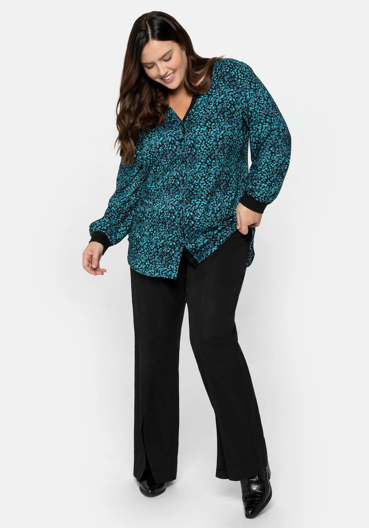 Der Mix aus Baumwolle und TENCEL™ Lyocell trägt sich sehr angenehm. TENCEL™ Lyocell ist eine glatte, seidige Faser, die zum größten Teil aus Eukalyptusholz gewonnen wird – einer Pflanze, die schnell wächst und daher ohne künstliche Bewässerung oder Pestizid-Einsatz auskommt. Darüber hinaus zeichnen sie sich durch ihre atmungsaktive, pflegeleichte und farbechte Qualität aus. Sie sind angenehm weich, fallen schön fließend und haben einen seidigen Glanz. TENCEL™ ist eine Marke der Lenzing AG. Außerdem unterstützt du mit dem Kauf die Arbeit von „Cotton made in Africa“. Die Initiative leistet Hilfe zur Selbsthilfe durch Handel und will so die Lebensbedingungen afrikanischer Kleinbauern verbessern. sheego cares!