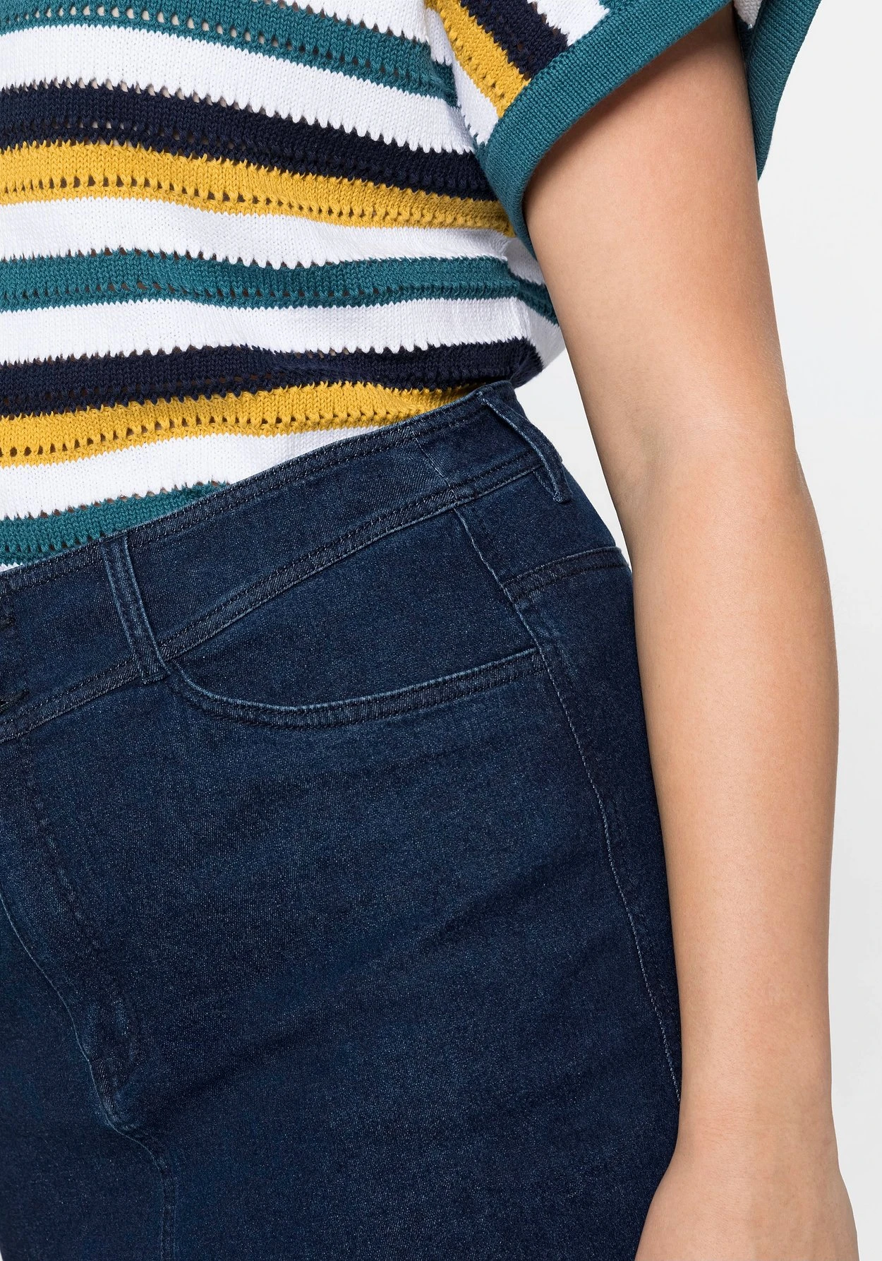 Die Denimqualität besteht aus einer tragefreundlichen Baumwollmischung. Mit deinem Kauf unterstützt du außerdem die Arbeit von „Cotton made in Africa“. Die Initiative leistet Hilfe zur Selbsthilfe durch Handel und will so die Lebensbedingungen afrikanischer Kleinbauern verbessern. sheego cares!