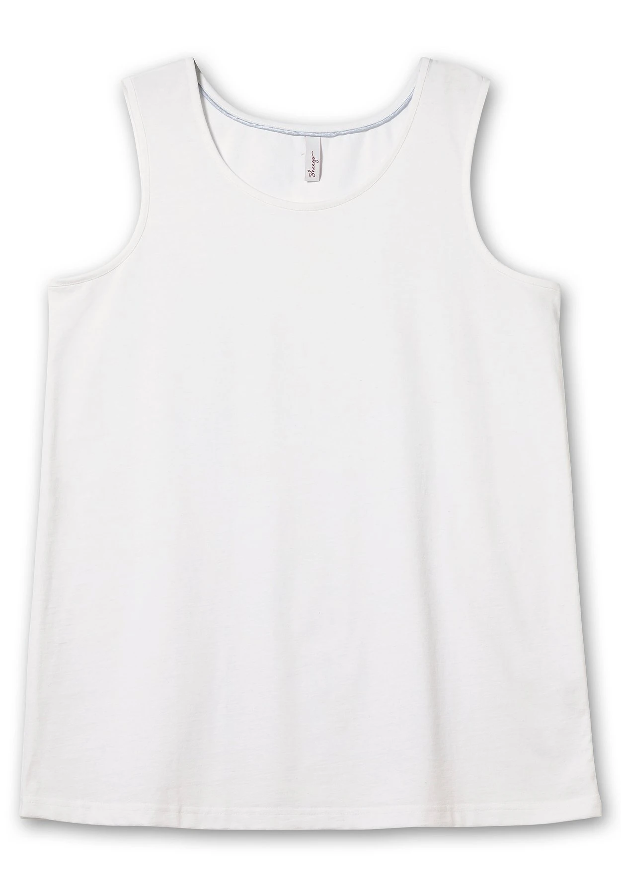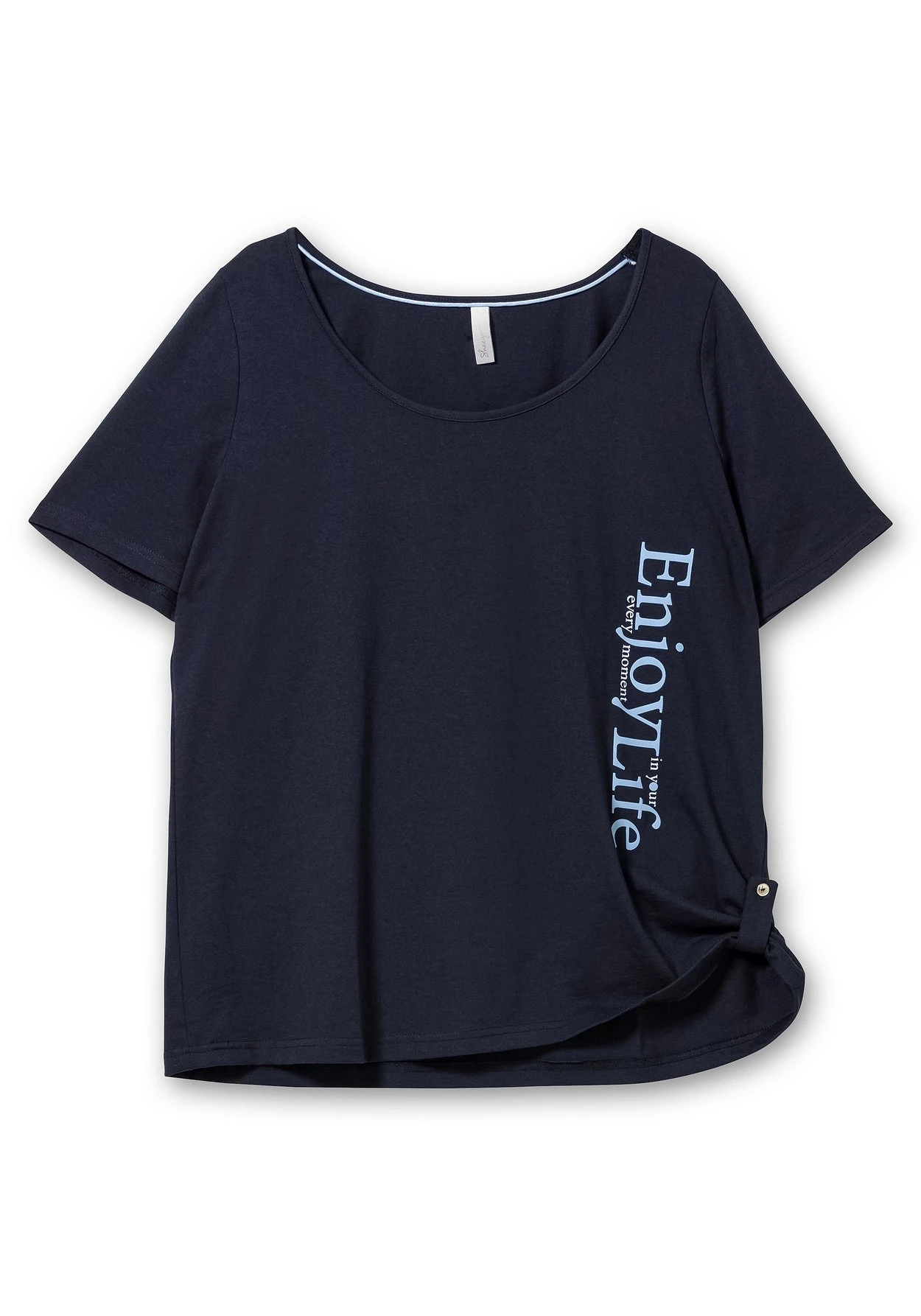 Die trageangenehme Jerseyqualität besteht aus recycelter Baumwolle und recyceltem Polyester. sheego cares!