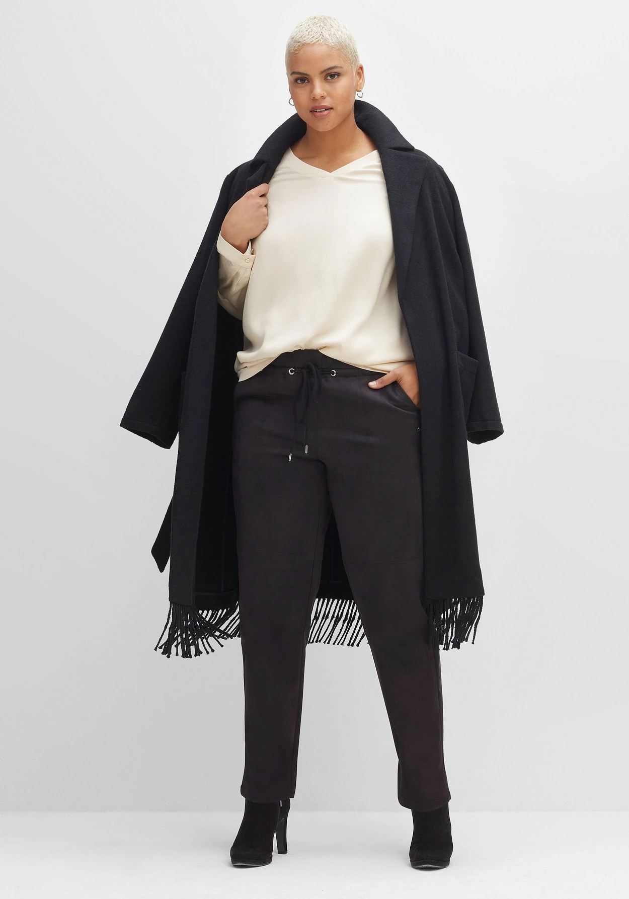 Joggpants aus Velourslederimitat. Für den sportiven und zugleich sehr bequemen Fit sorgt der Gummibund mit Bindeband, dazu kommen zwei praktische Eingrifftaschen. Die Teilungsnaht am Oberschenkel und geschickt gesetzte Ziernähte formen die Silhouette. Ein modisches Highlight, das für Alltag, Büro und Party gleichermaßen passt.