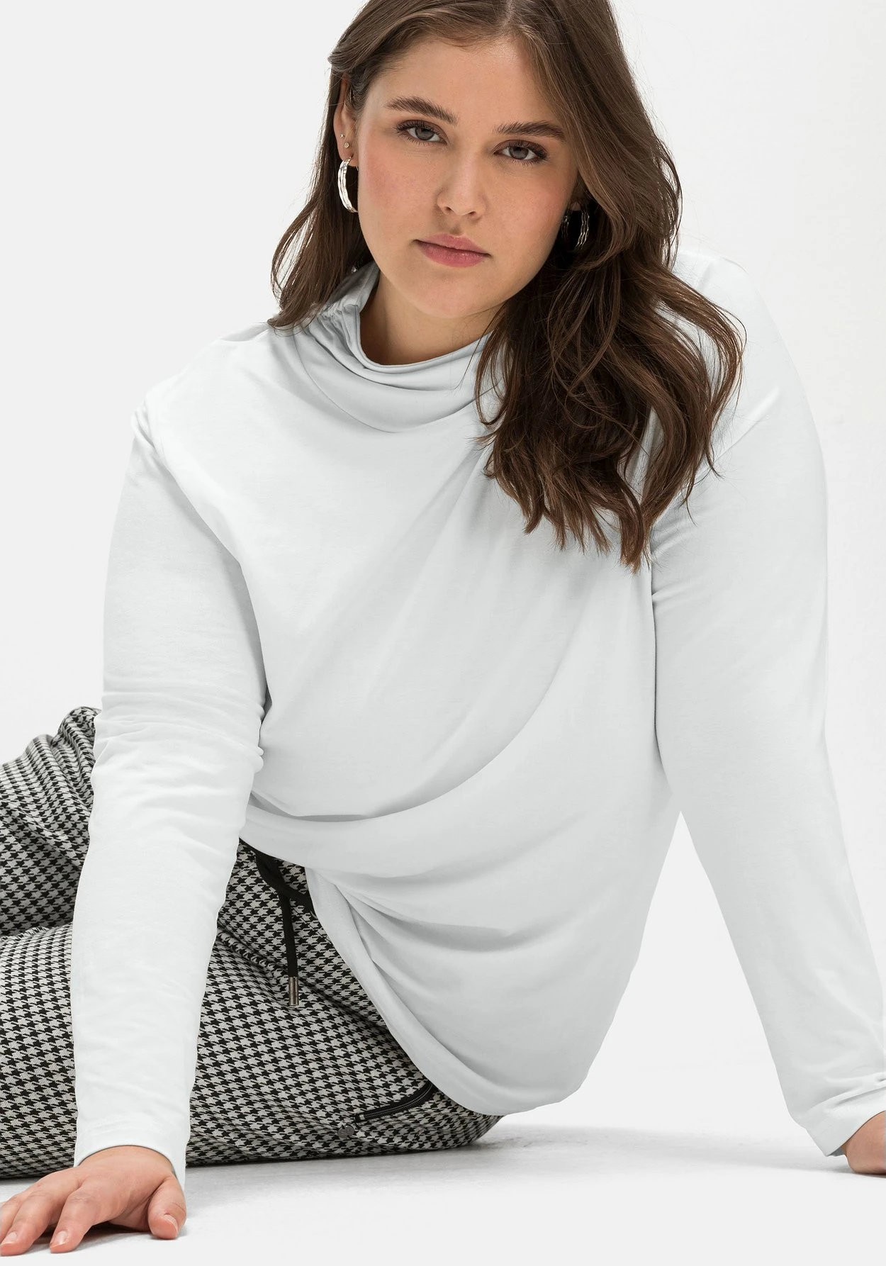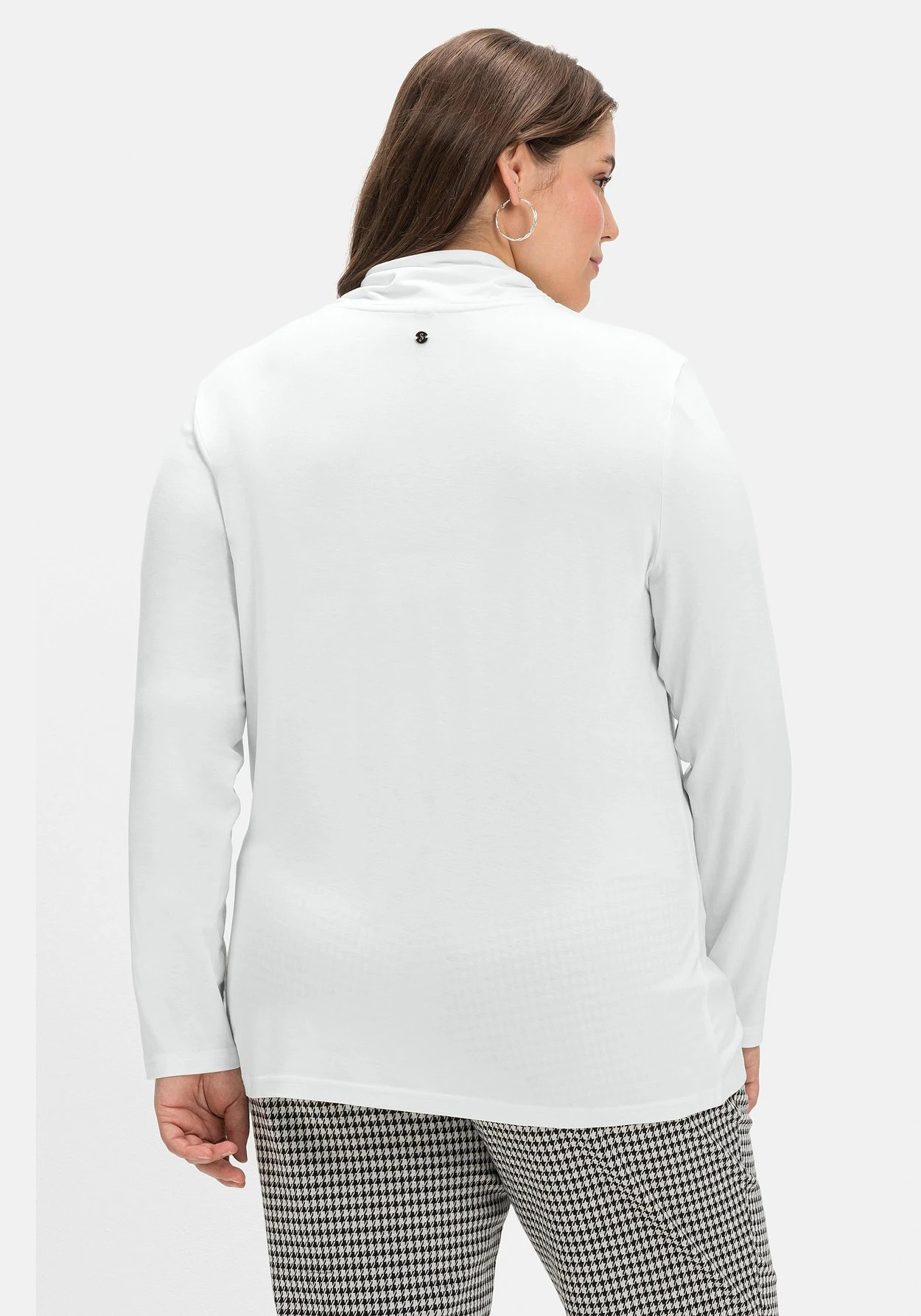 Langarmshirt mit Stehkragen. Der schlichte, cleane Style erhält durch die leichte Raffung am Kragen eine dezent feminine Note. Ob als Solist oder als Unterziehshirt zur Strickweste oder zum Blazer – der Style ist ein vielseitiger Allrounder.