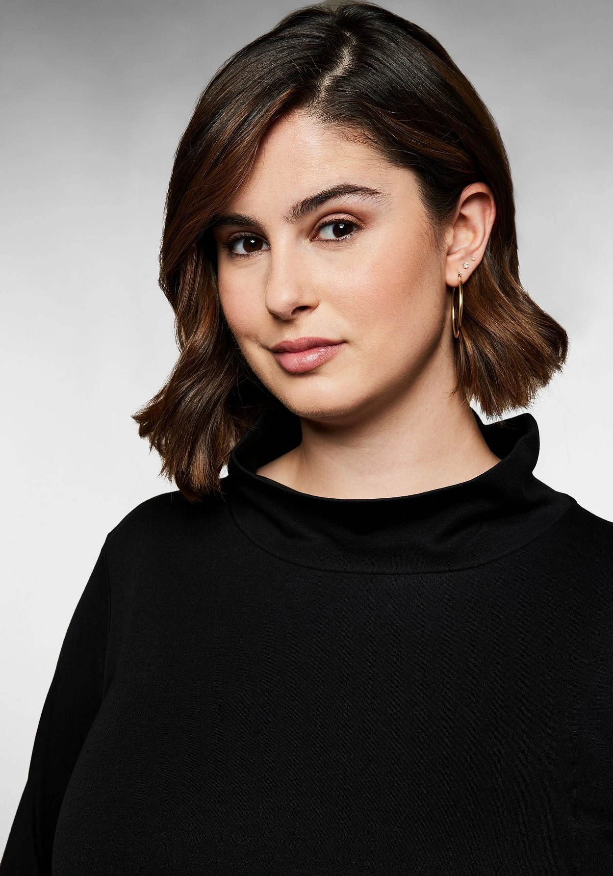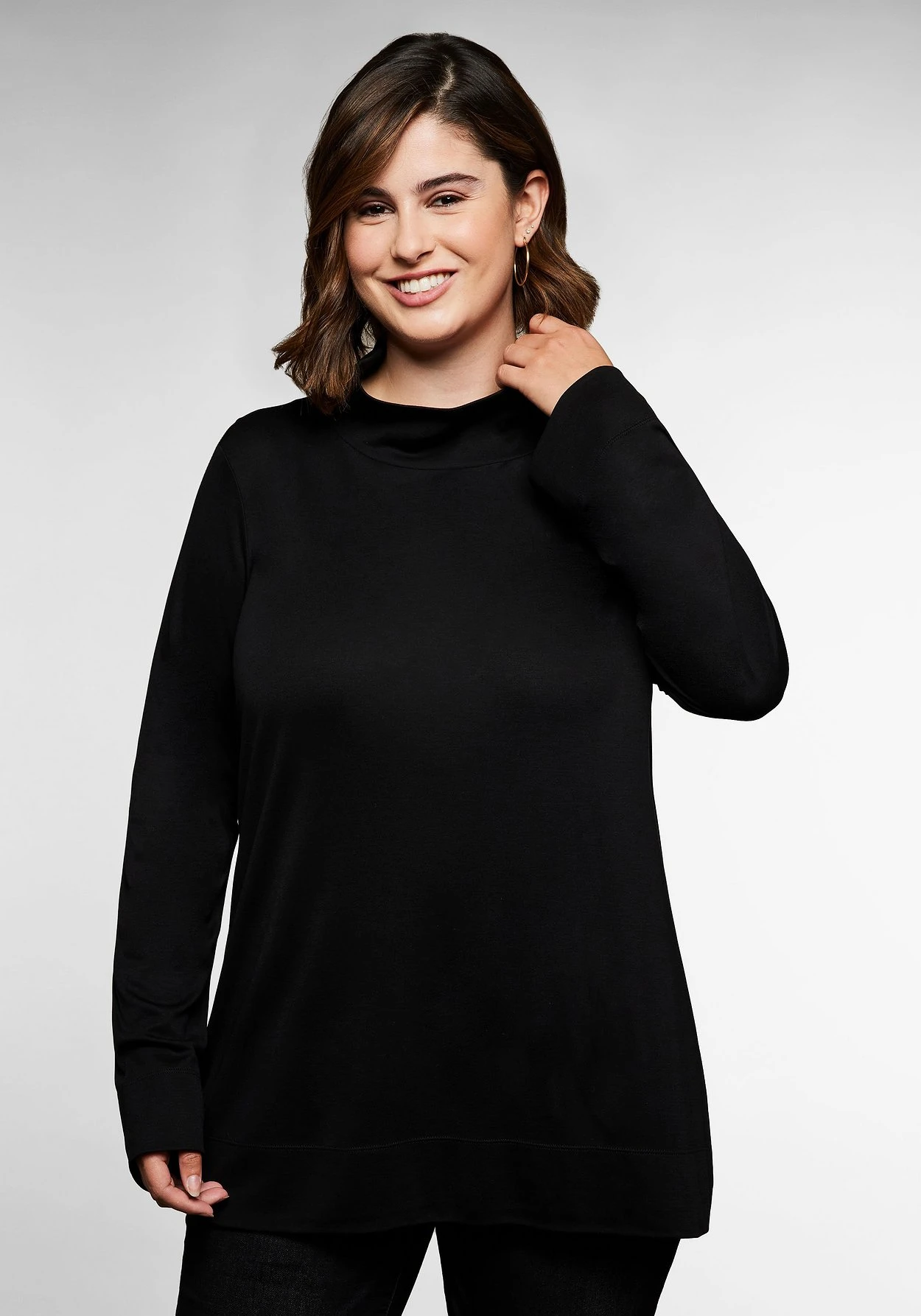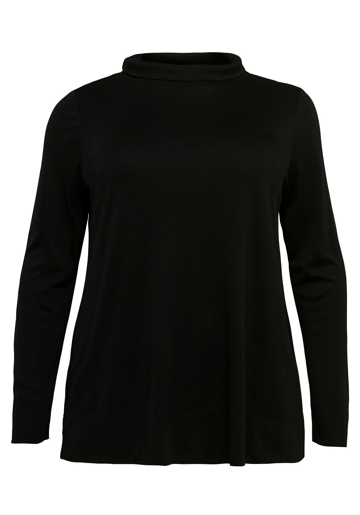Langarmshirt aus TENCEL™ Lyocell. Der schlichte, unkomplizierte Style wird durch den etwas höheren Stehkragen zum vielseitigen Begleiter durch die kältere Jahreszeit.
