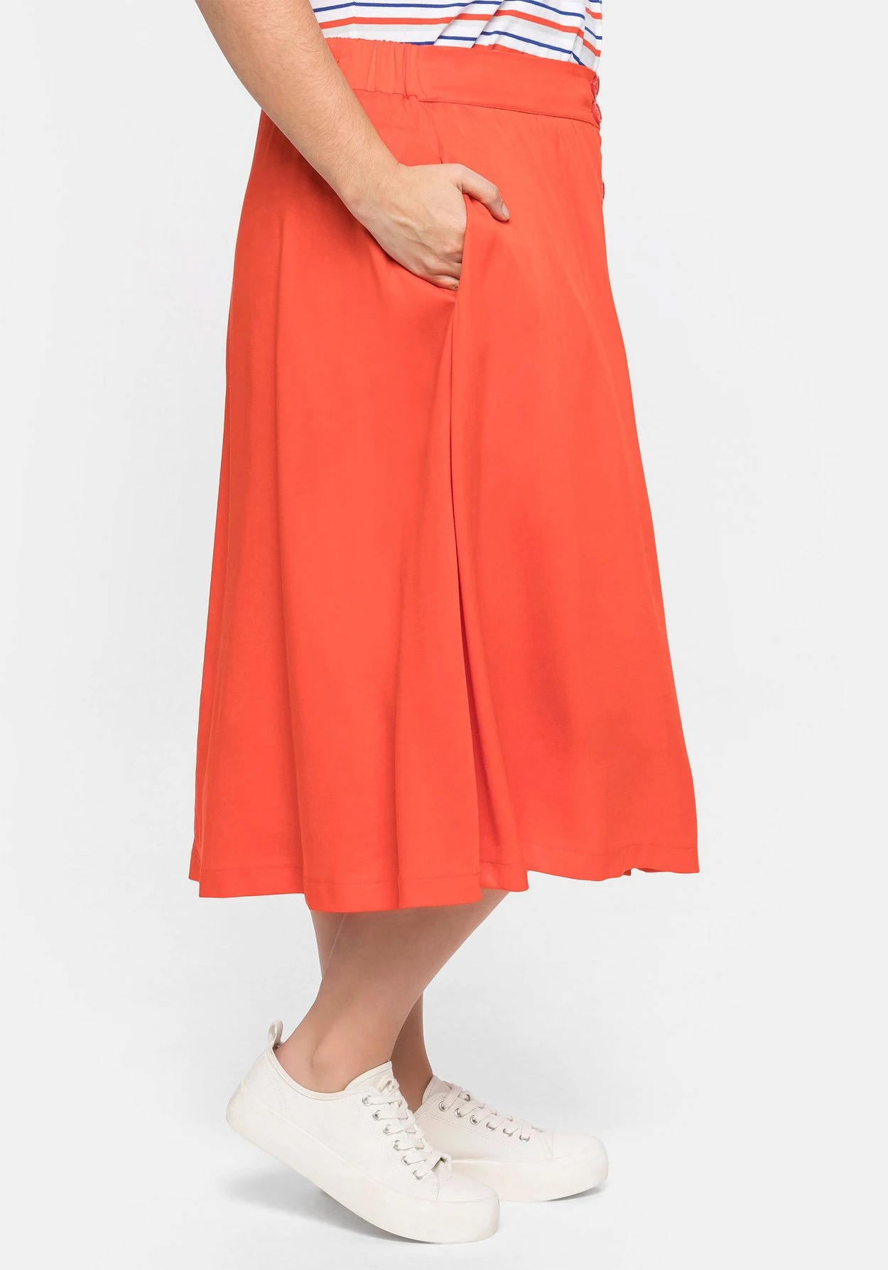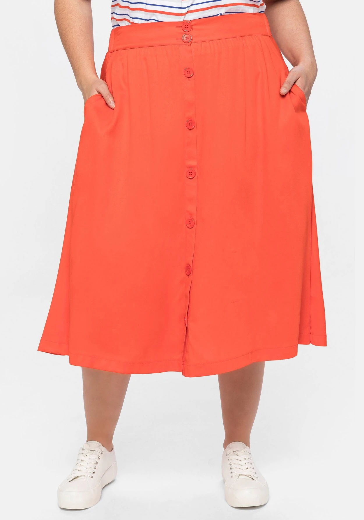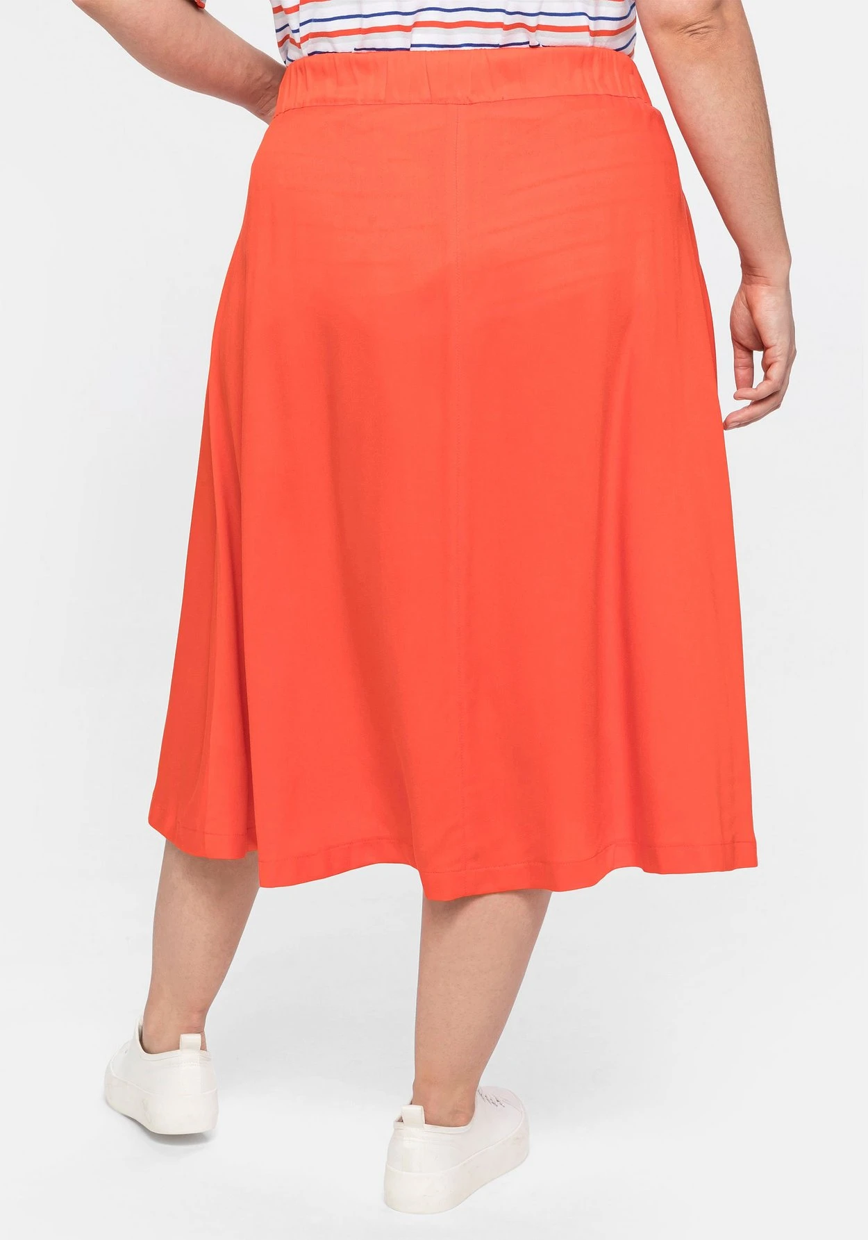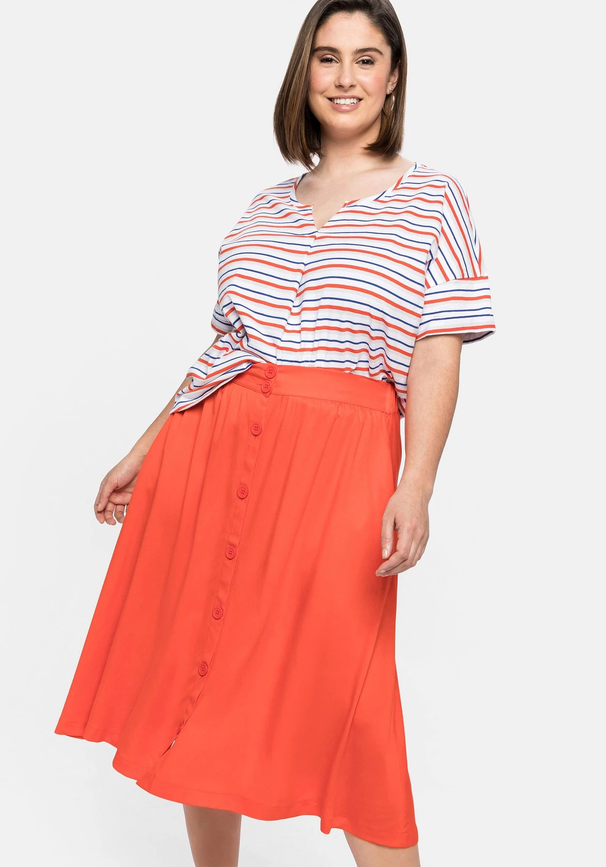 Der Rock aus fließender Viskose-Qualität trägt sich angenehm weich. Für die Herstellung von LENZING™ ECOVERO™ Viskose werden ausschließlich zertifizierte, nachhaltige Holzressourcen verwendet. Auch der gesamte Produktionsprozess entspricht streng den Richtlinien des EU Öko-Labels. LENZING™ und ECOVERO™ sind Marken der Lenzing AG. sheego cares!