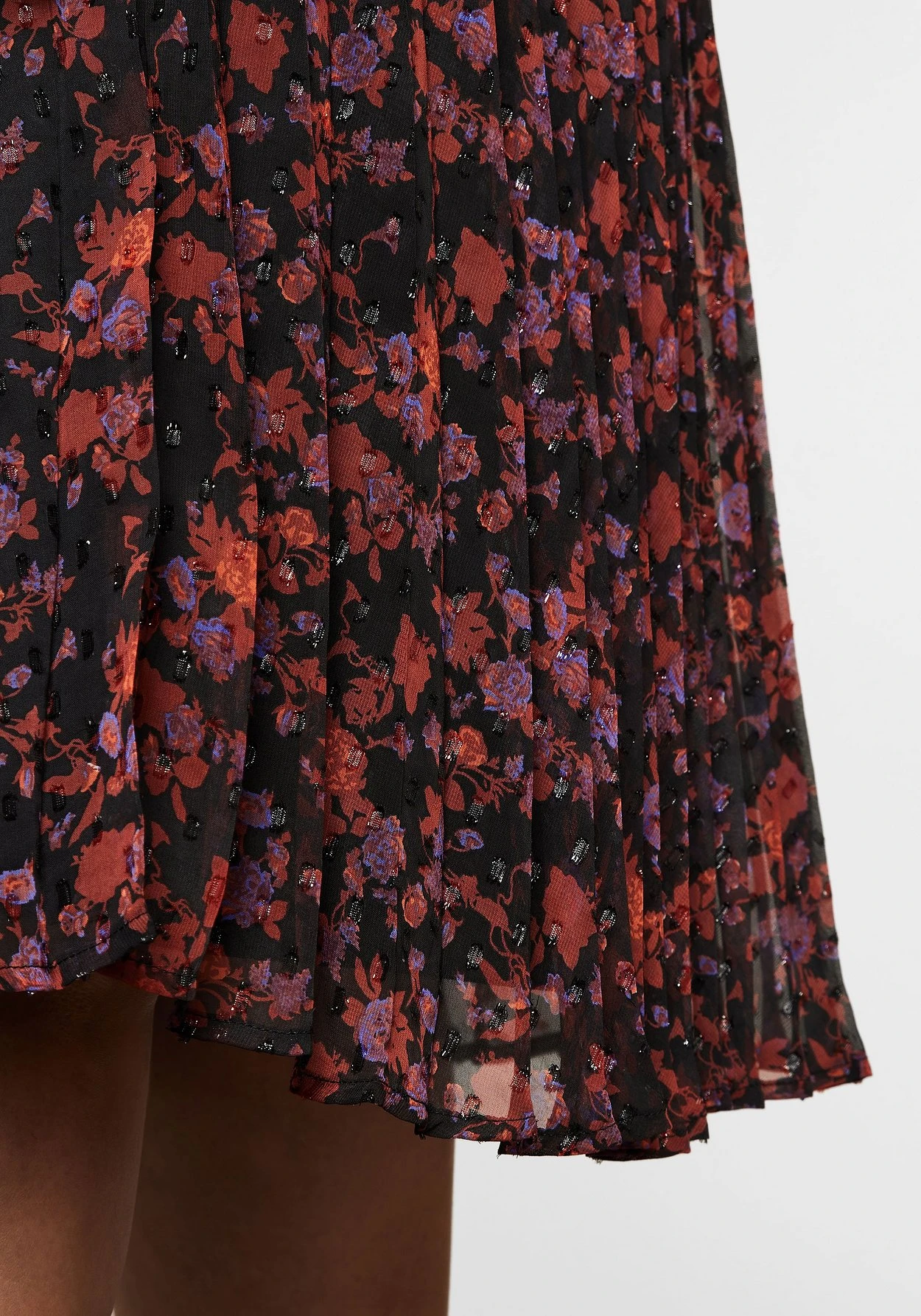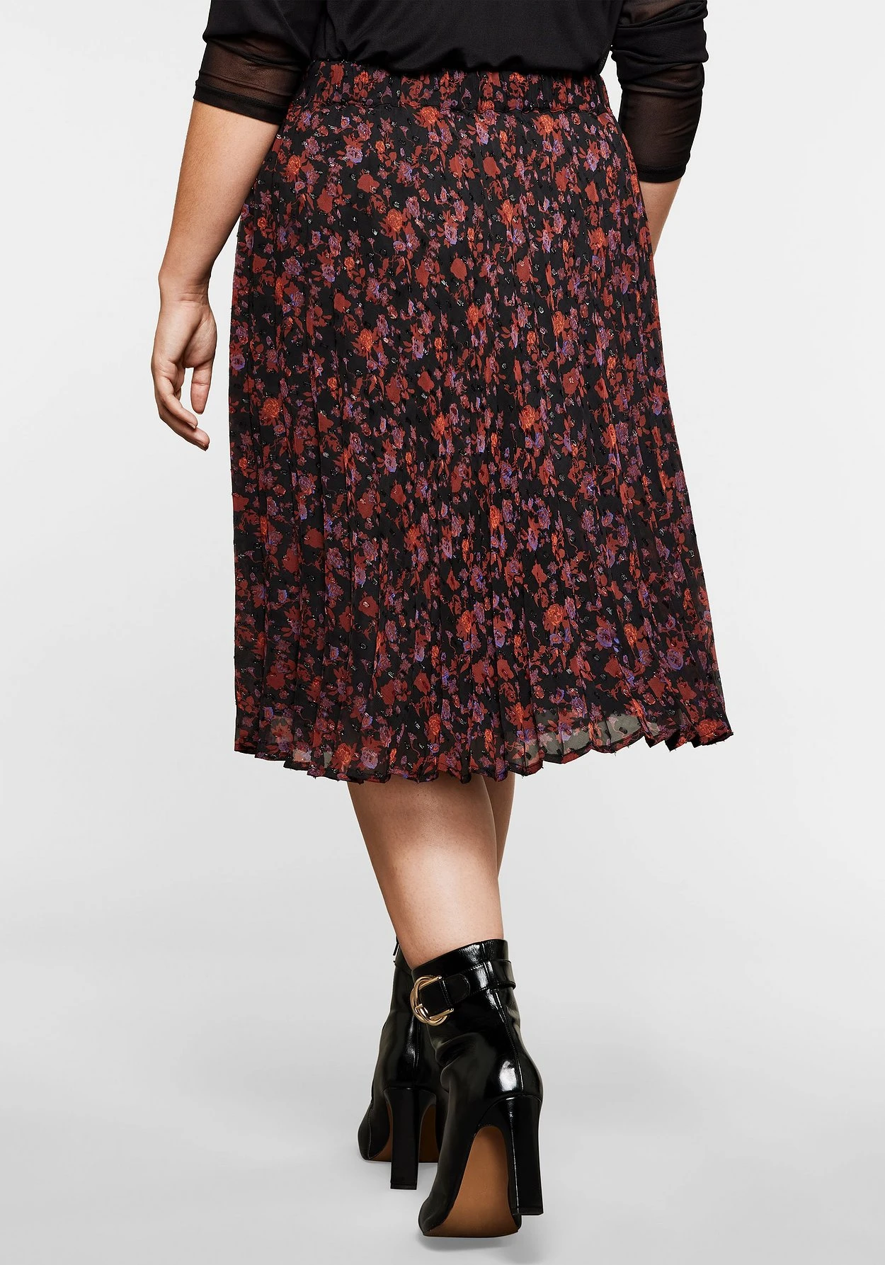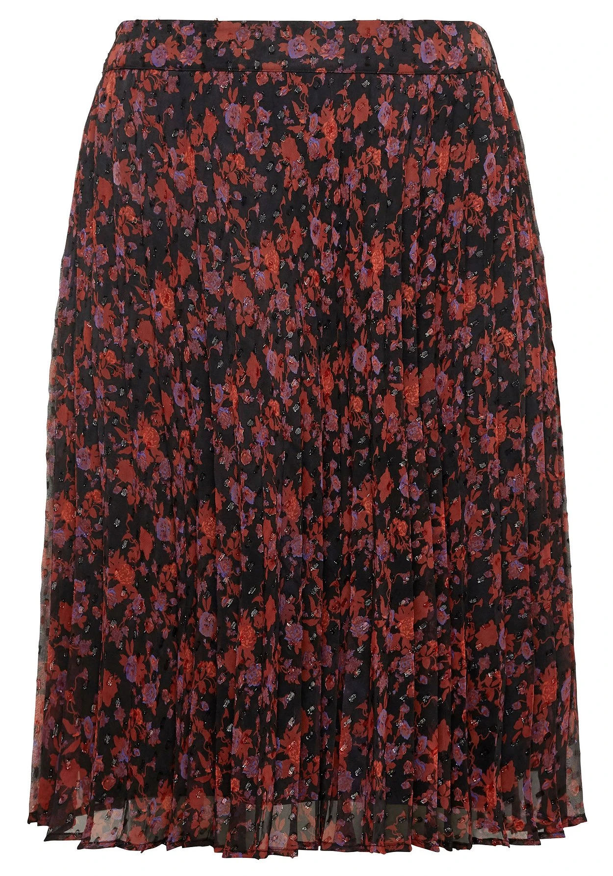 Rock in A-Linie. Feminine Leichtigkeit erhält der Rock durch die zarten Plissees und das eingewebte florale Muster. Der Bund ist hinten mit einem Gummibund versehen und sitzt dadurch besonders bequem.