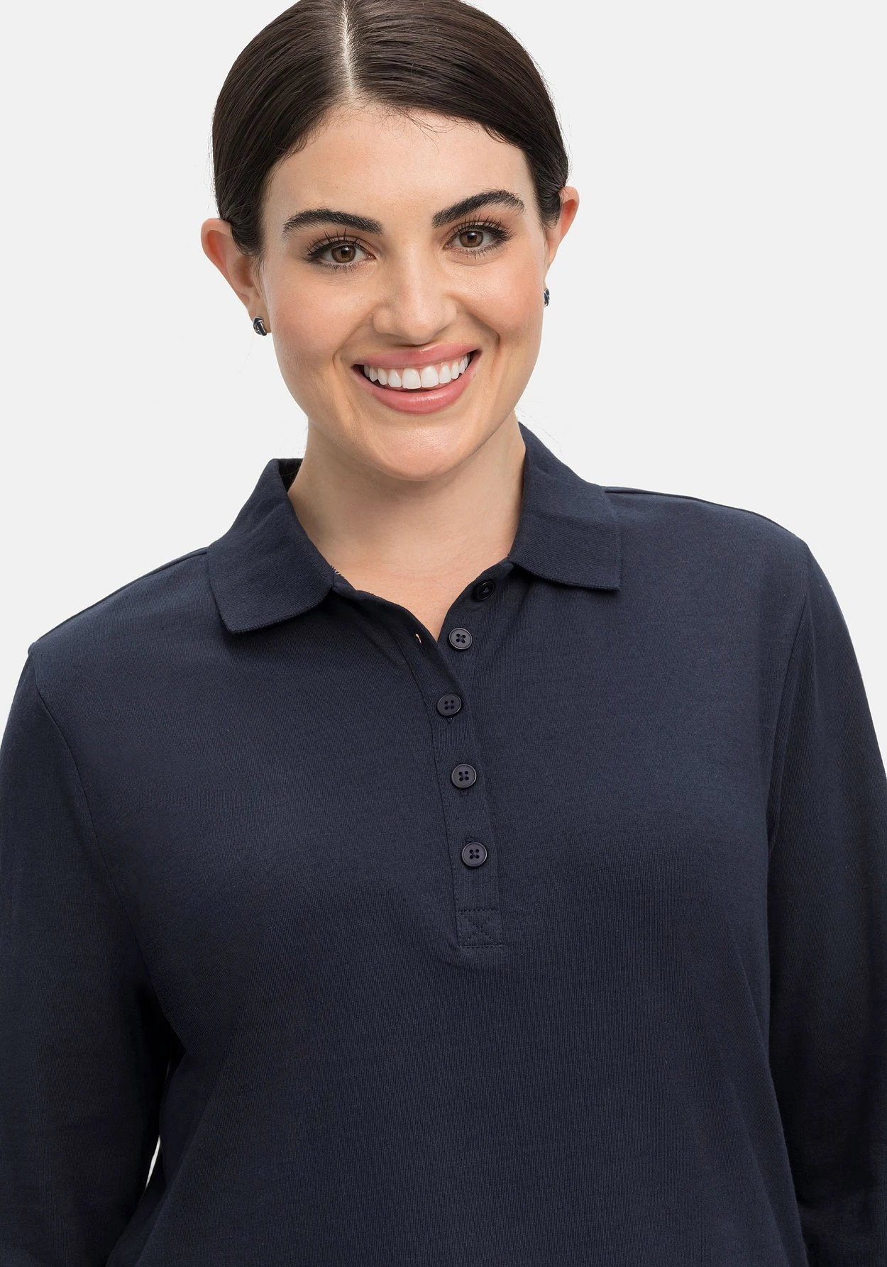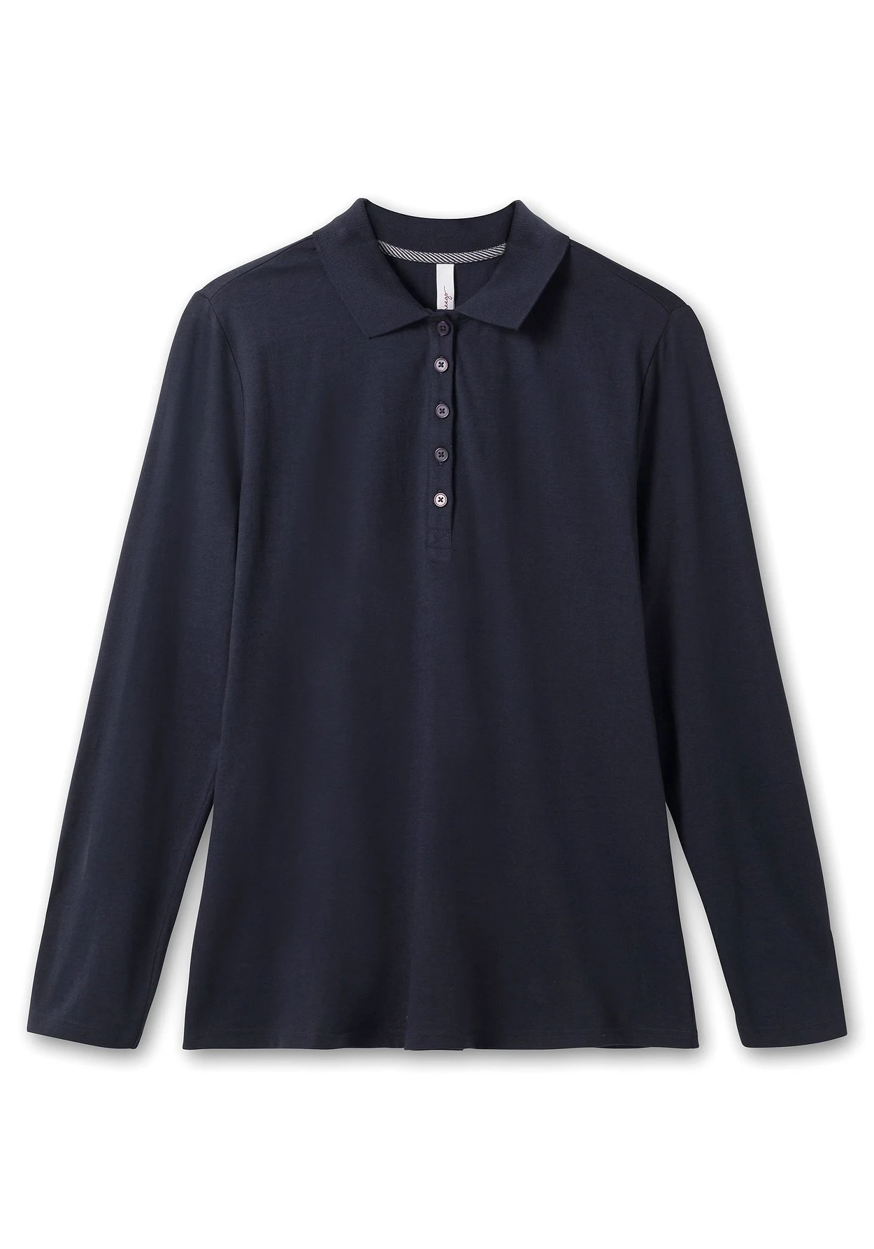 Shirt im modischen Polo-Stil. Mit geripptem Kragen und typisch kurzer Knopfleiste macht sich dieses Langarm-Poloshirt perfekt für den Alltag. Dazu unterstreicht die feine Melange-Optik den sportiven Look.