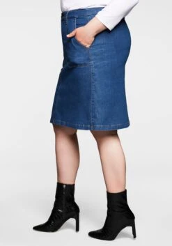 Der Rock kommt im klassischen 5-Pocket-Stil, in kniefreier Länge und ist so besonders kombistark. Für Bequemlichkeit und Bewegungsfreiheit sorgt der Gehschlitz hinten.