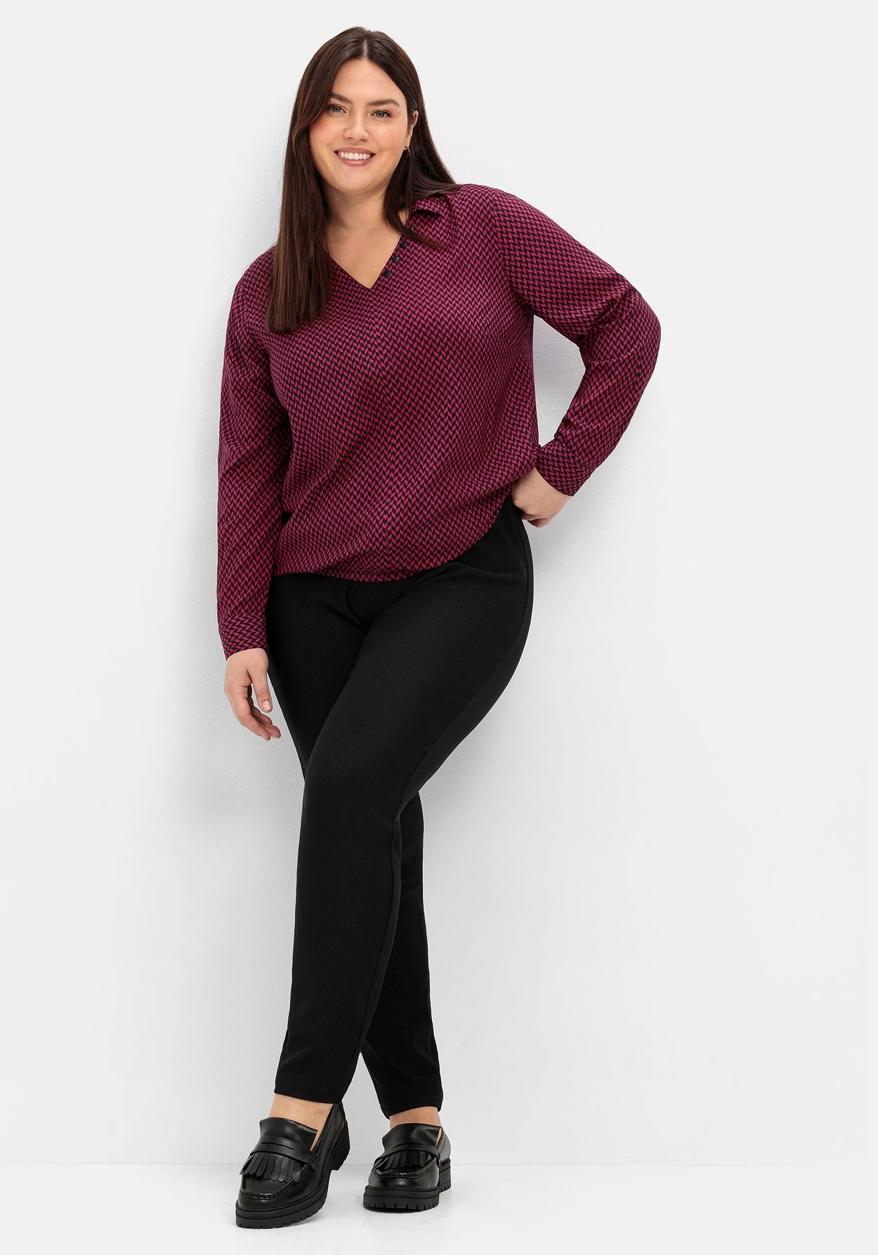 Schmale Hose in Ottoman-Rippe. Die Längsstruktur verleiht der Hose eine figurschmeichelnde Optik, der elastische Bund trägt sich durch den innenliegenden Gummizug besonders komfortabel. So entsteht ein gepflegter und zugleich bequemer Look, der im Alltag genauso passt wie im Büro.