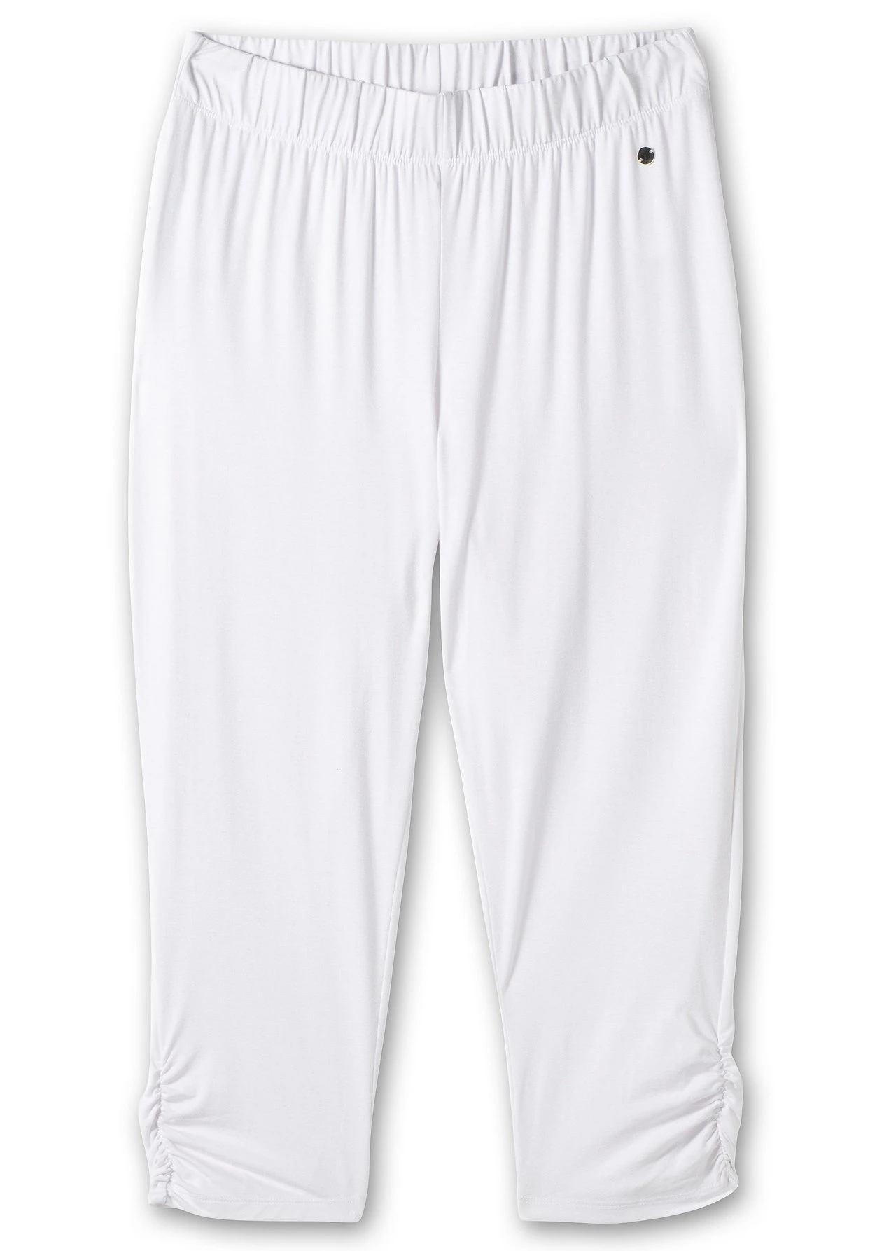 Die schmalen Leggings in Caprilänge reichen bis knapp über das Knie und sitzen dank Gummibund sehr bequem. Darüber fällt das in längerer A-Linie geschnittene Shirt locker bis über Hüfte und Po.