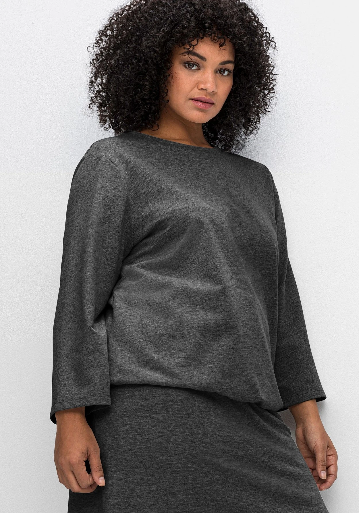 Sweatshirt mit 7/8-Ärmeln. Die weite Passform wird durch den Gummibund am Saum modisch zusammengeführt. Der Rundhalsausschnitt ist mit einer Blende versehen.