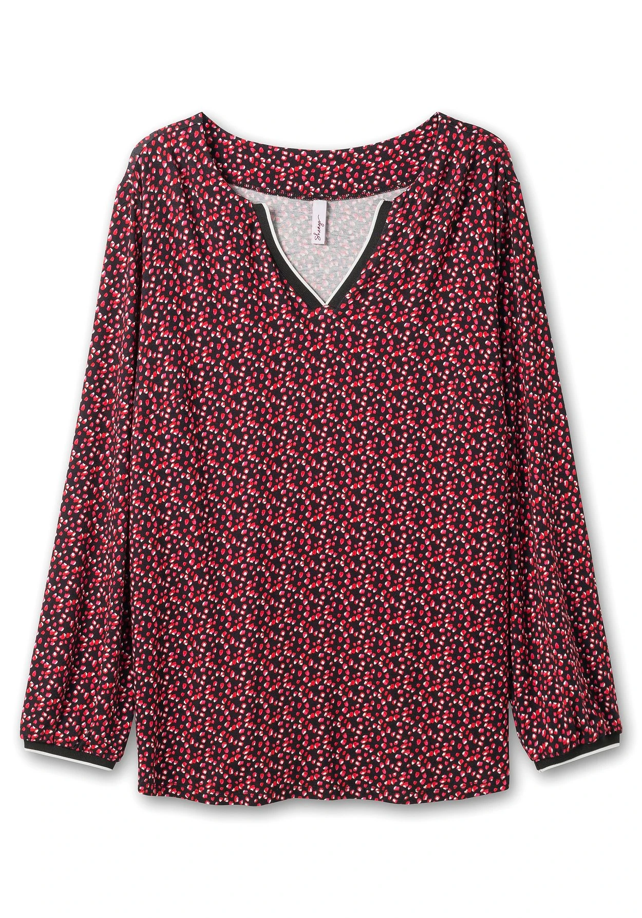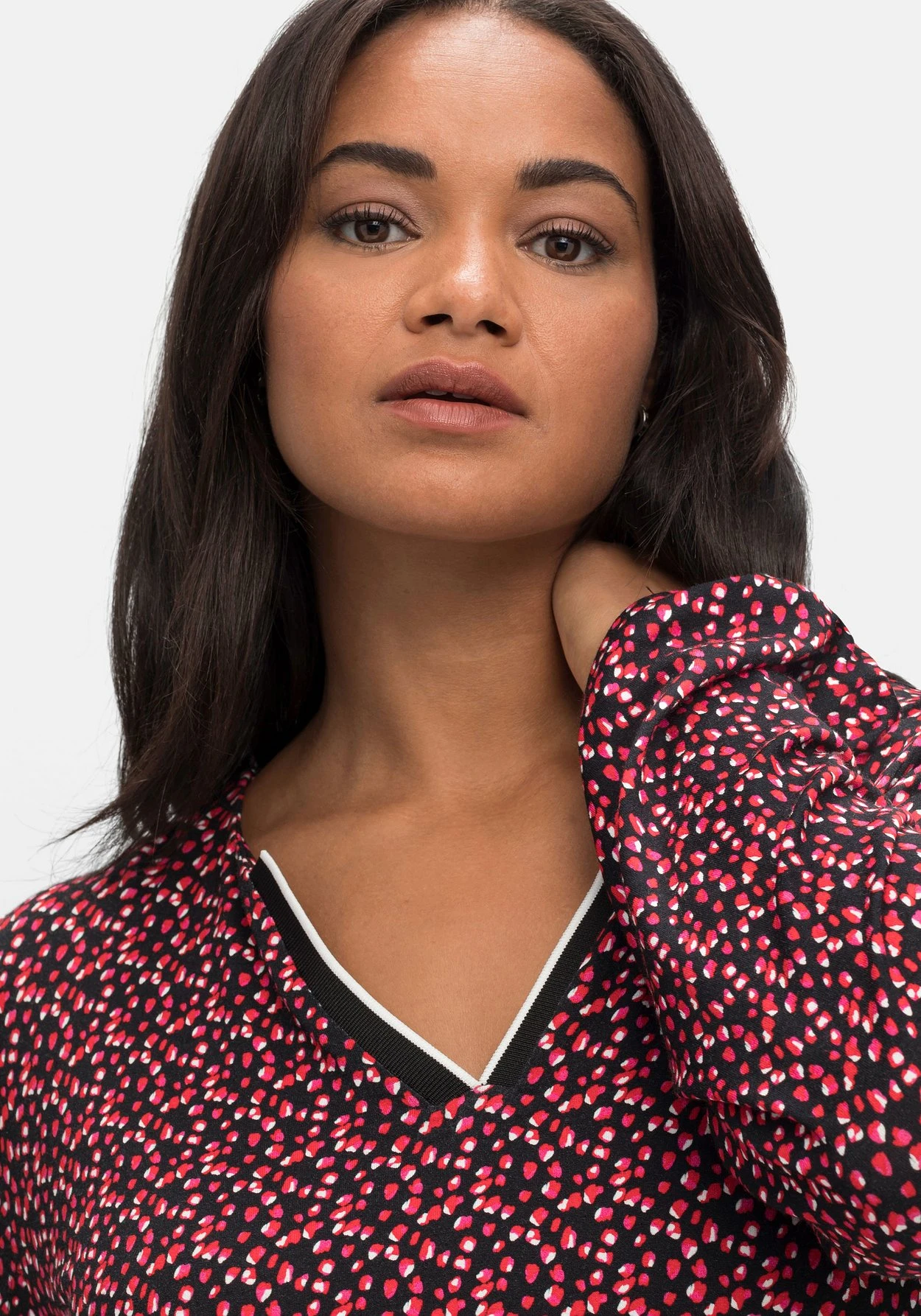 Tunika mit V-Ausschnitt. Herzstück dieses Oberteils ist der modische Alloverprint. Abgerundet wird der Look durch elastische Rippbundabschlüsse und einen abgerundeten Saum.