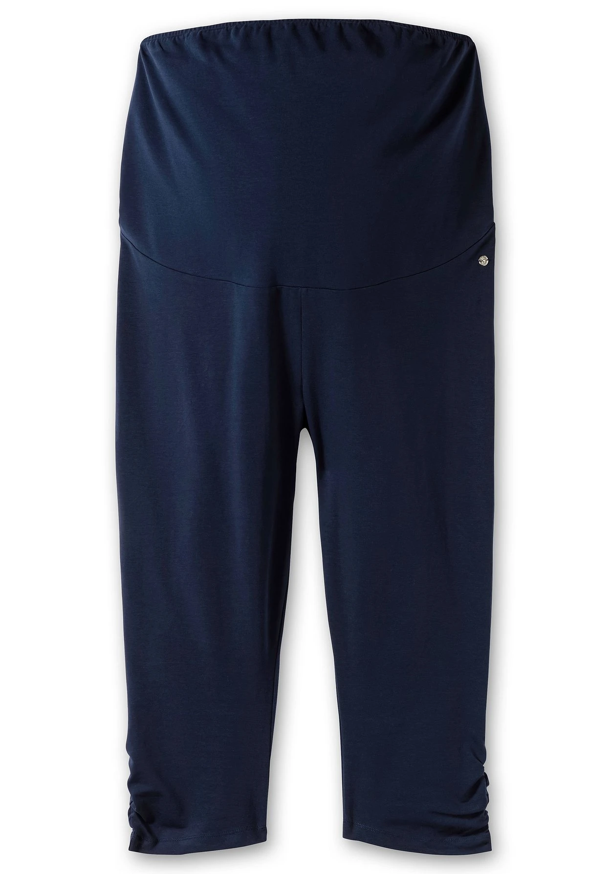 Schwangerschafts-Leggings in Caprilänge. Der elastische Überbauchbund ist hoch geschnitten und sitzt dadurch sehr bequem. Er dehnt sich mit dem Babybauch wunderbar mit – ideal auch für die Zeit nach der Geburt. Für noch mehr Komfort ist am oberen Ende des Bunds ein Gummizug eingearbeitet, der nicht einengt und gleichzeitig optimalen Halt bietet. Eine seitliche Raffung am Hosensaum rundet den schlichten Look feminin ab. Dazu kommen das kleine Metalllabel am Bund vorn sowie die dezente Stickerei hinten.
