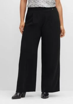 Hose in weiter Beinform. Die Bundfalten geben dem Style eine gepflegte Optik, das weite Bein sitzt bequem und sorgt gleichzeitig für eine moderne Silhouette. Zu schließen ist die Hose mit Haken und Ösen, seitliche Eingrifftaschen ergänzen den Look.