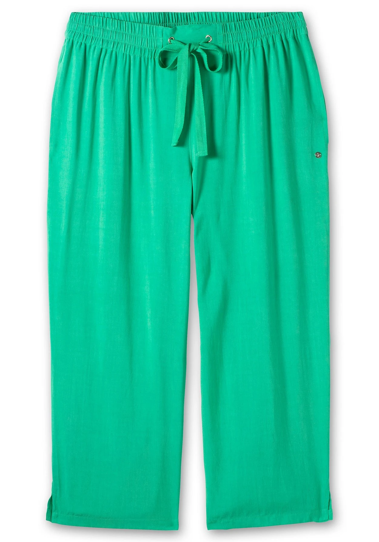 Die weite Beinform ist mit seitlichen Schlitzen gearbeitet. Die knöchelfreie Länge macht die Hose zum idealen Sommerbegleiter.