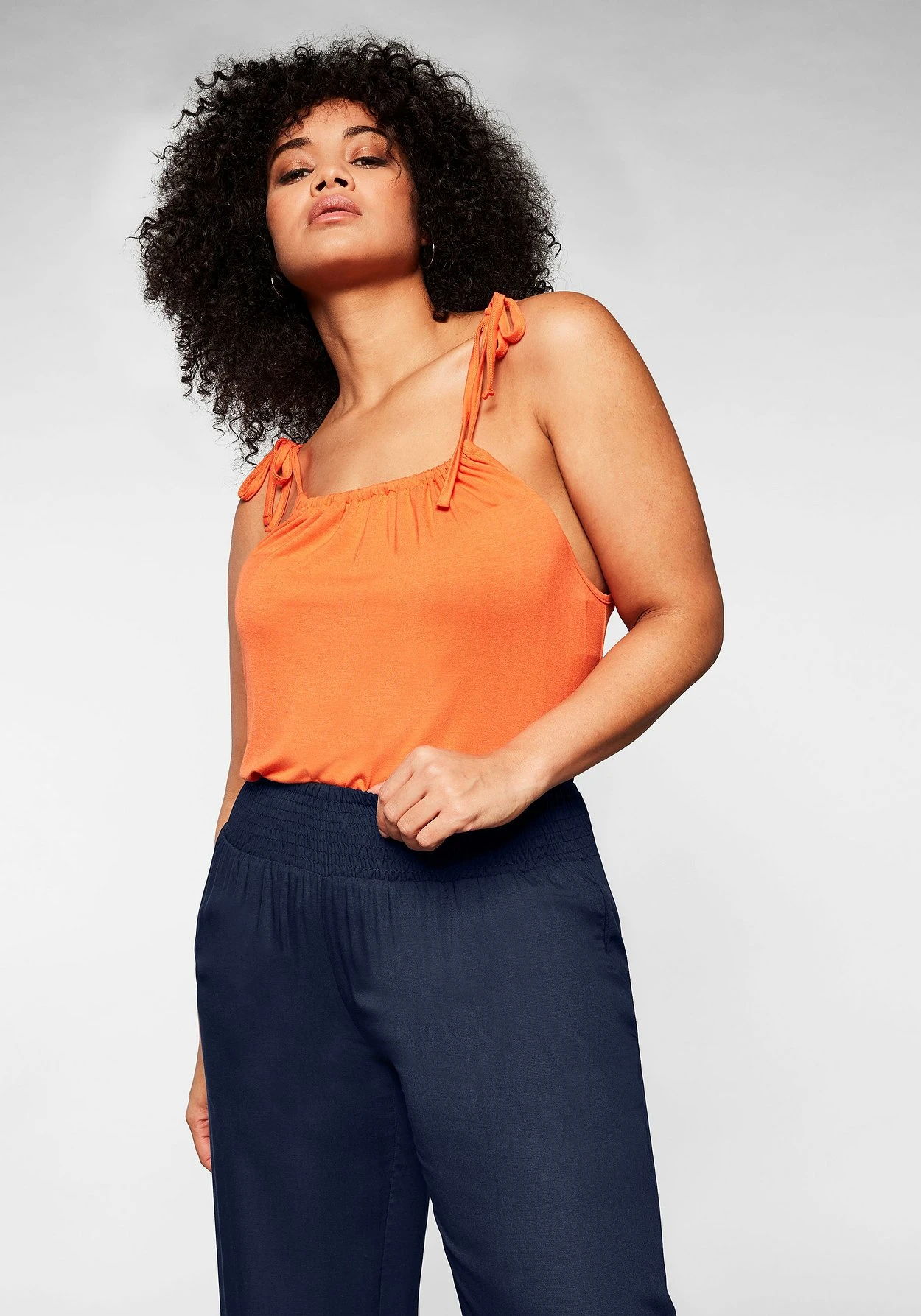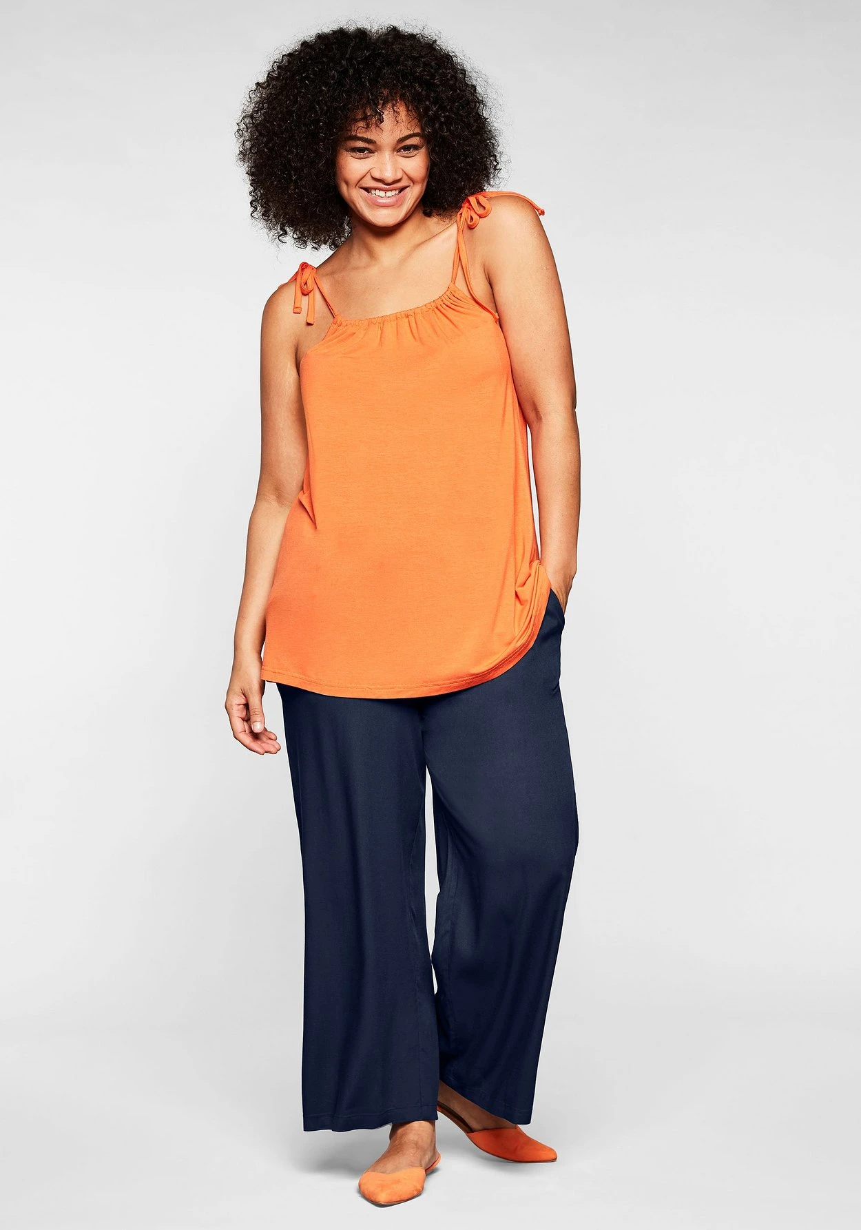 Die sommerlich leichte Qualität besteht aus fließend fallender, gewebter Viskose. Für die Herstellung von LENZING™ ECOVERO™ Viskose werden ausschließlich zertifizierte, nachhaltige Holzressourcen verwendet. Auch der gesamte Produktionsprozess entspricht streng den Richtlinien des EU Öko-Labels. LENZING™ und ECOVERO™ sind Marken der Lenzing AG. sheego cares!