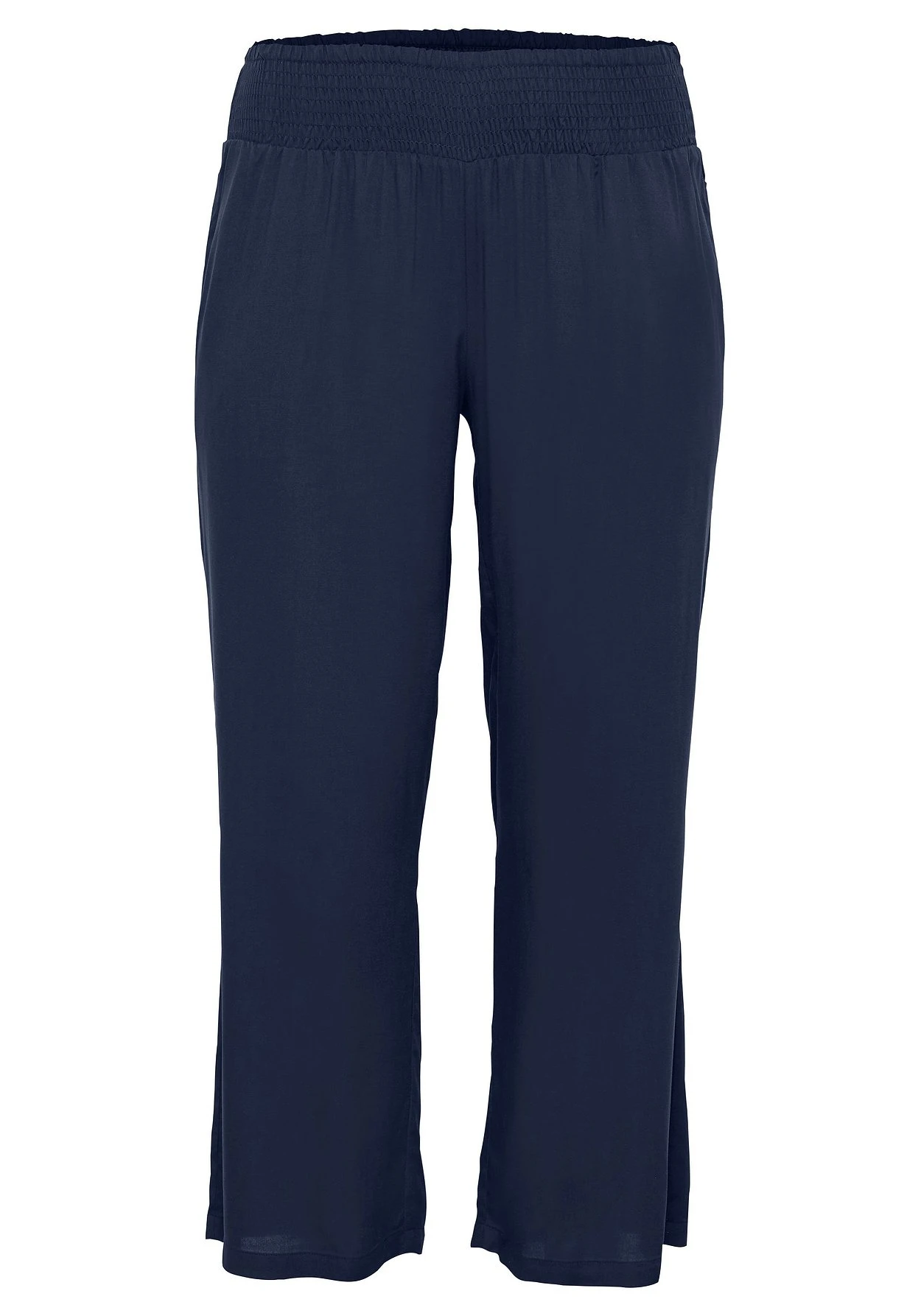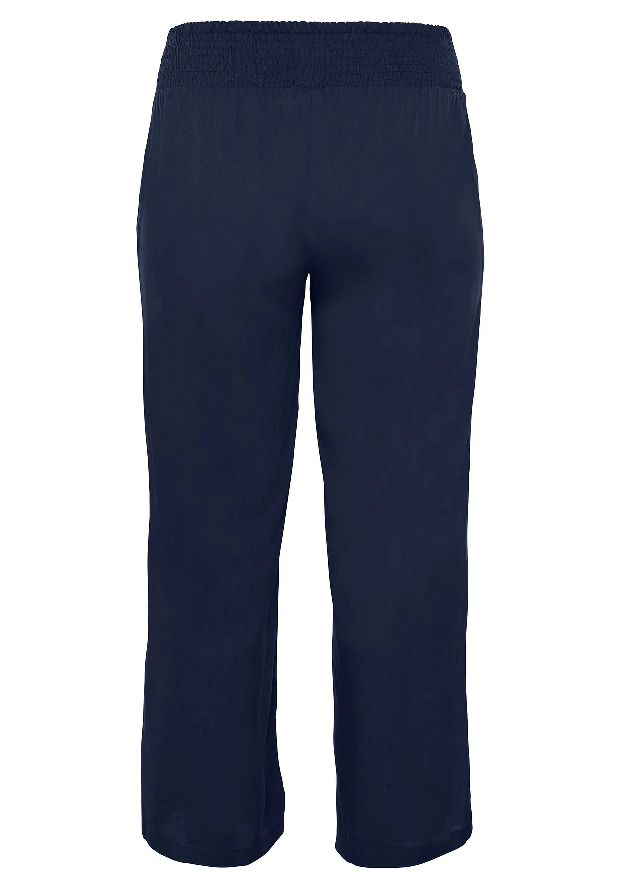 Für einen entspannten Sommerlook sorgt diese luftige, weite Strandhose. Sie überzeugt durch zwei Eingrifftaschen in der Seitennaht und einen breiten Smokbund, der maximale Bequemlichkeit garantiert.